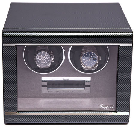 A fine watch will last a lifetime if properly cared for, the Formula Watch Winder range promises to do this. This watch winder is a stylish way to keep to your two automatic timepieces running smoothly. This luxury watch winder is available in Carbon fiber or Black finish. The Formula features a lockable front, glass door with three distinct stripes across the front, which distinguish this range. An LCD control panel allows you to select a range of settings, with interior lighting for enhanced effect.