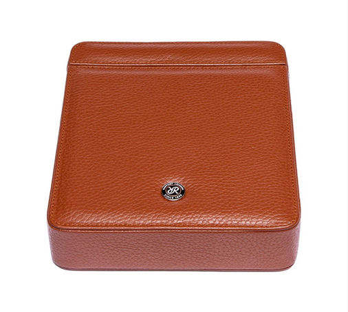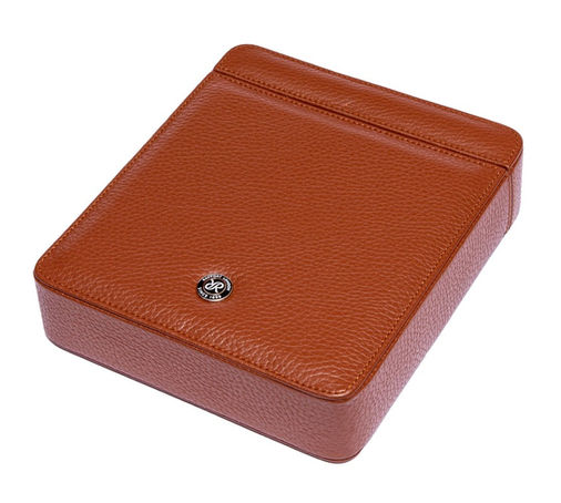 A robust watch slip storage case made in the finest quality soft pebble grain leather, hand stitched and lined in soft suede. The top of the case slides away from the base revealing a cut-out section to position your two watches securely. It is the ideal watch accessory for travelling or storage at home. This twp piece luxury leather watch exudes effortless style.