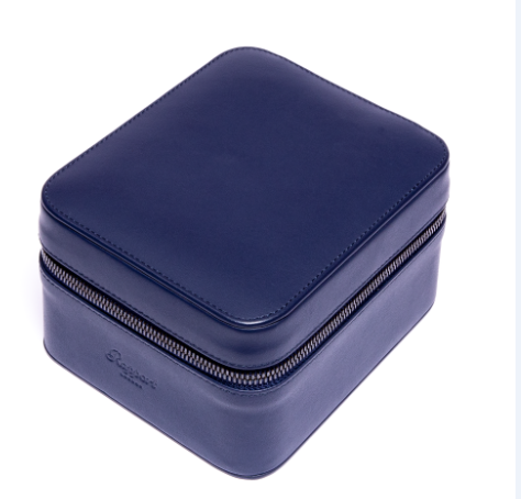 The ultimate gift for the modern gentleman - the Hyde Park two watch case is covered in a buttery tan or navy leather, with a robust zip too close. A smooth suede lines the interior and watch compartments, with adjustable watch cushions. Our emblem is printed on the underside of the lid - a symbol of refined, quality craftsmanship since 1898.