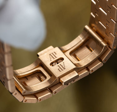 Grail alert! Up for sale or trade is the Royal Oak Chronograph with the highly desirable blue dial against exquisite rose gold. You won’t see many of these! It’s housed in an insanely finished 18-carat gold case and matching bracelet finished to the highest quality AP knows how to do. This piece comes on a factory AP bracelet with all the links, as well as the blue leather strap, rose gold deployant clasp, and with gold mounts/plots to be able to mount the strap to the watch. This gives you the ability to mix and match the look to your liking.