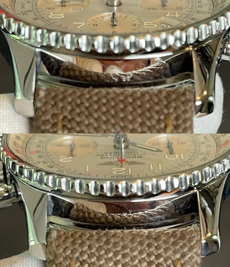 This watch is pre-owned but in great shape. Purchased new from the Breitling AD in 2011 (as seen on the warranty card). Meticulously taken care of by a Breitling collector. This thing shines like you wouldn’t believe with all the polished surface on the watch. This watch comes with both the original black leather strap with white stitching (showing wear) that pairs with the Breitling Deployant clasp, as well as a more casual looking Breitling brown canvas and leather strap (deployant compatible as well). In addition, you can opt to add a brand-new after-market black leather strap with white stiching if desired. These options let you mix things up when you feel like a different look for your Navitimer.