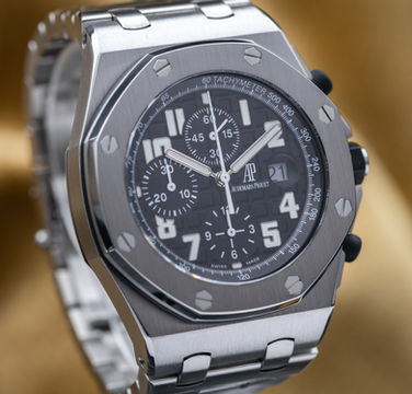 This is an “H” serial number piece from 2011. Watch comes with outer and inner AP boxes and original papers. The case, crystal and bracelet are in great condition. Comes fully linked with all original bracelet links. Watch is in complete working order and keeping great time, as you’d expect from an AP.