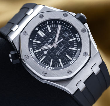 Up for sale or trade is the dive watch of all watches - the AP Royal Oak Offshore Diver. This one with the open case back so you can see the AP 3120 movement in all its glory! You get 300 meters of water resistance, a black dial with white accents, all with the finish, refinement and mechanical artistry only the house of Audemars Piguet could bring! With the iconic Mega Tapisserie dial, unique design of the inner rotating dive chapter ring, and of course some of the best brushing and polishing in the business on the 42mm case. Don’t miss this one while it lasts!