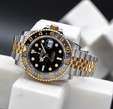 No introduction needed on this one - this fan-favorite GMT Master II, this one the new two-tone with the new black/grey bezel, affectionately known as the “Bumblebee”. With its perfect mix of functionality and style, it’s a favorite among travelers and watch enthusiasts alike, making it a standout piece in any watch collection!