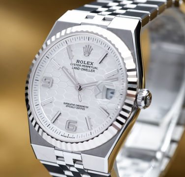 The Land‑Dweller is one of Rolex’s most talked-about recent releases, representing a fresh chapter for the brand. Launched in 2025, this sporty yet elegant timepiece has a 40mm Oyster case with a fluted white gold bezel and a striking white honeycomb dial that gives it a fresh, modern look. The new Flat Jubilee bracelet sits super comfortably and makes the watch feel sleek on the wrist, almost like a blend of a Datejust and something more contemporary. Inside, it’s powered by Rolex’s new-generation movement, so it’s every bit as solid and precise as you’d expect. The Land-Dweller stands out in Rolex’s lineup for its unique design cues and fresh energy, making it a great choice if you want something a bit different but unmistakably Rolex.