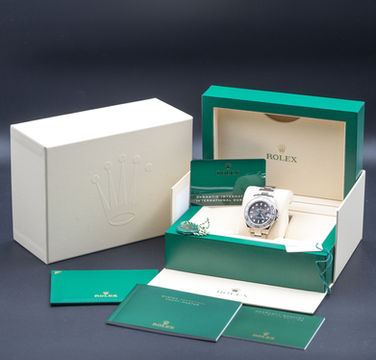 Pre-owned and in great shape! Watch is from 2020. Comes with boxes and all papers, including warranty card as well as all original bracelet links, green Rolex hang tag, and even the white hang tag with serial number details. The case, crystal and bracelet are in great condition. Watch is keeping great time, as you’d expect.