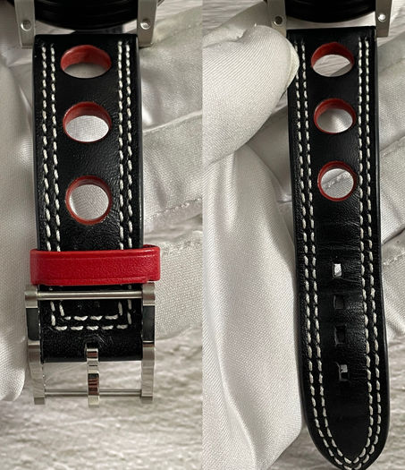 This watch is pre-owned but in great shape and only worn lightly for 2 years. Comes with everything when purchased originally from BRM. The case, crystal and clasp are in incredible shape. The vintage motorsport style calf skin leather strap shows signs of use where the pin buckle was used (as you’d expect) but is fully functional and in perfect working condition.