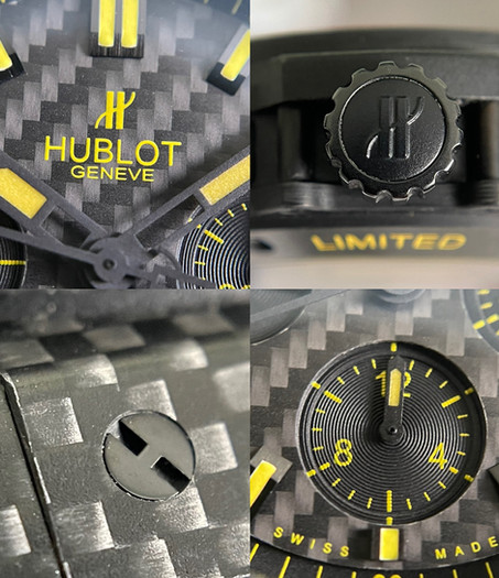 This special edition all carbon fiber Big Bang Evolution is on a whole other level from the standard Big Bangs you are used to! Only 25 of this model were ever made! From the distance it looks like an all-black Big Bang but then as you get closer you notice the yellow dial accents and stitching and of course the intricacies of the beautiful carbon pattern. Manufacturing their traditional layered/sandwich case with such a unique and difficult to work with material is Hublot innovation at its finest! All this carbon fiber is fitting for a watch inspired by the automotive and motorsport industry! Whether you’re into it for this racing connection, or just one of the coolest chronograph pieces around, you won’t be disappointed with this Hublot!